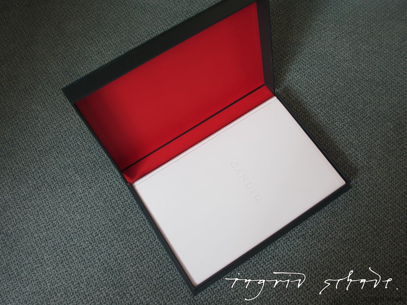 Buchumschläge: weißes Kalbsleder, Vorsatzpapier rot