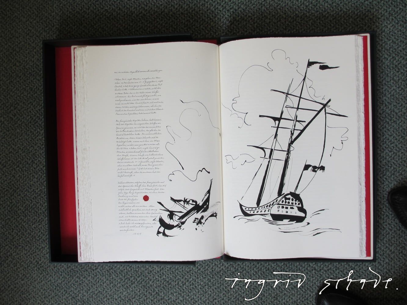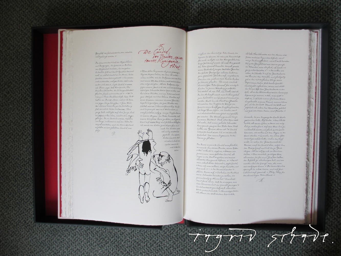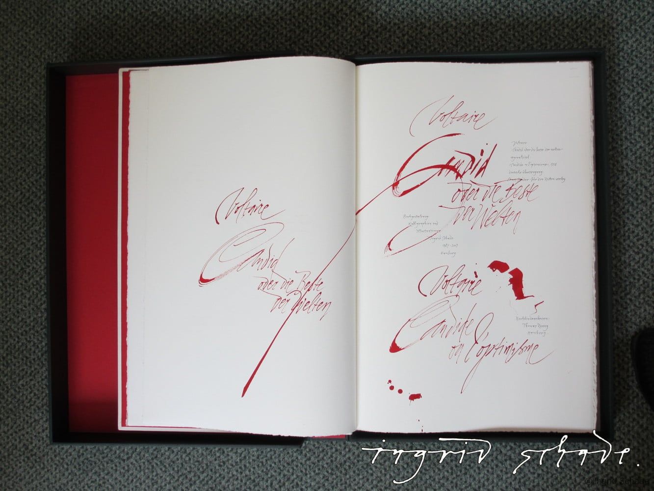 CandidEine Auswahl aus meinem vollständig kalligraphierten und reich illustrierten Buch-Unikat. Entwürfe für Zeichnungen seit 1988, Entwicklung der Buchgestaltung und Ausführung der Kalligraphie und der zahlreichen Zeichnungen zwischen 2001 und 2010.