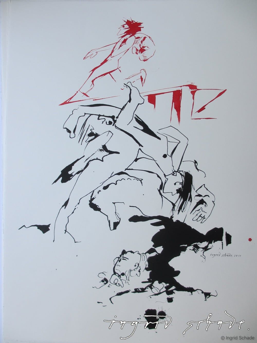 Aquarell- und Acrylfarbe, ausgeführt mit schmaler und breiter Flachfeder auf RIVES-Bütten 34,5×51,5×4