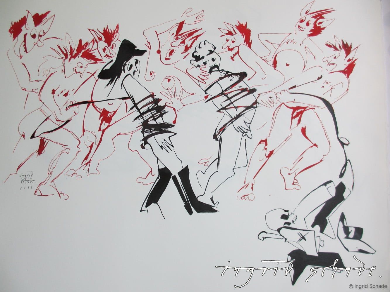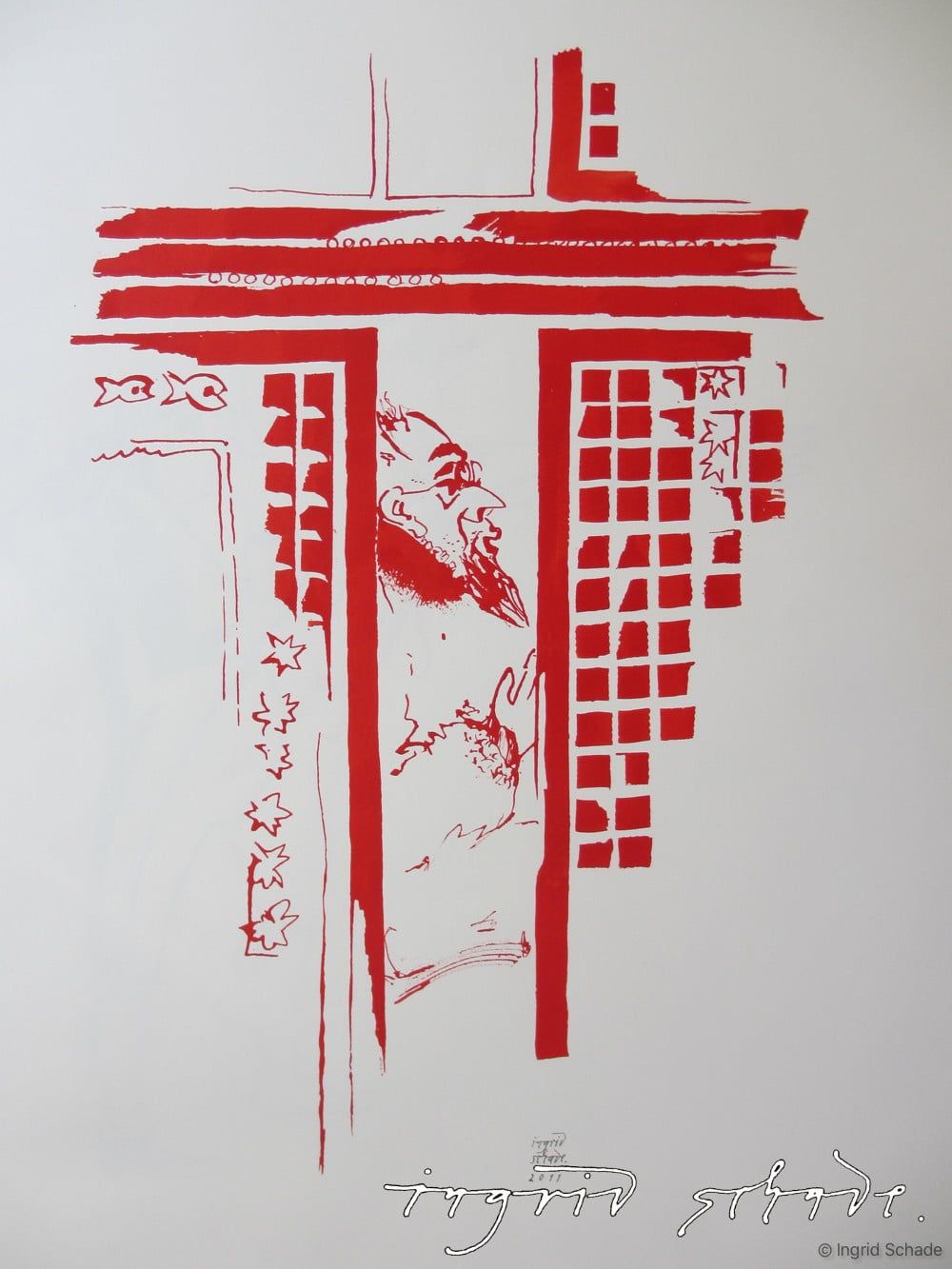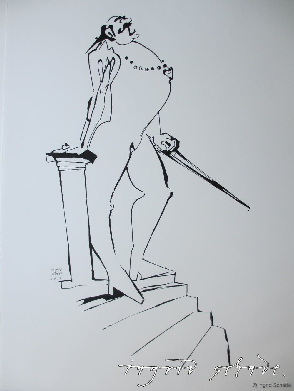 Auswahl aus 31 Zeichnungen zu meinem vollständig kalligraphierten und reich illustrierten Buch-Unikat  „Candid“ von Voltaire