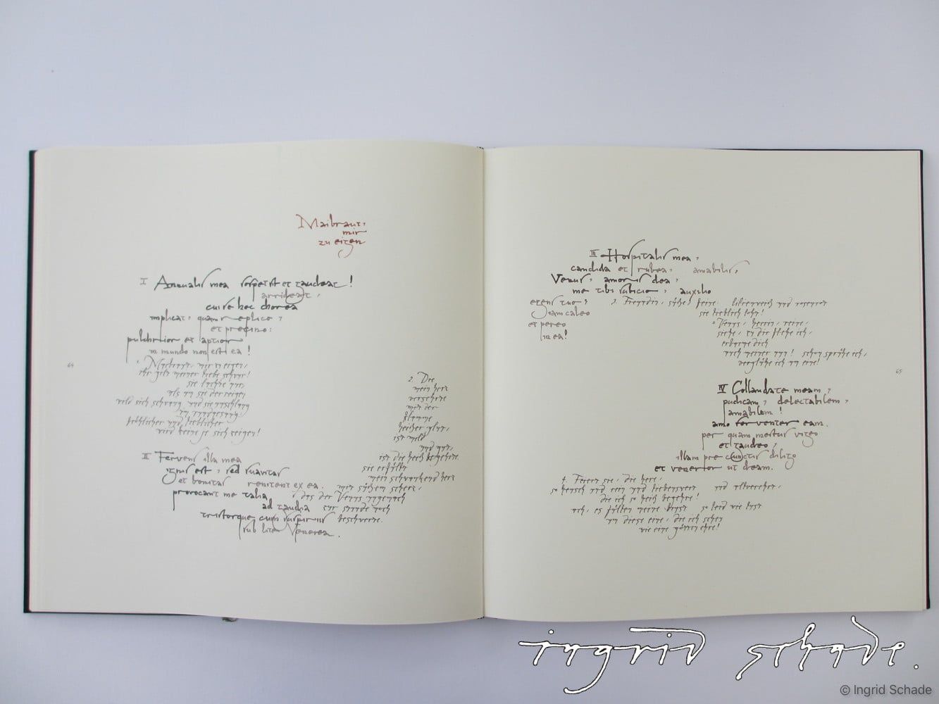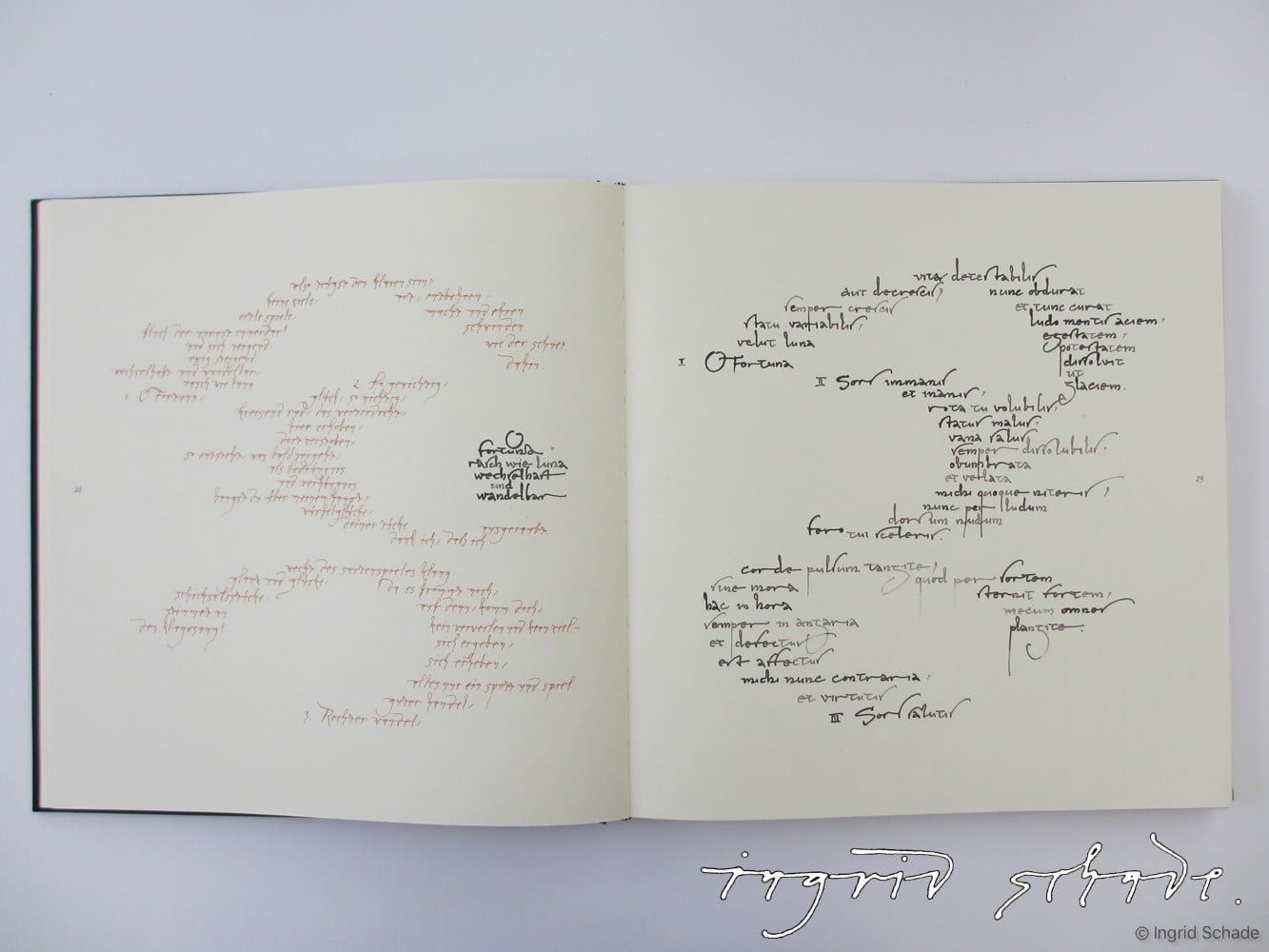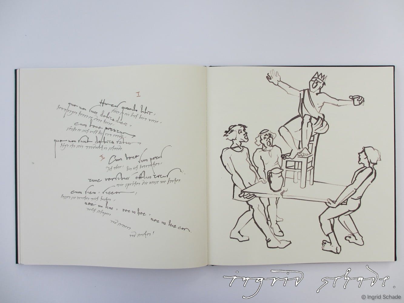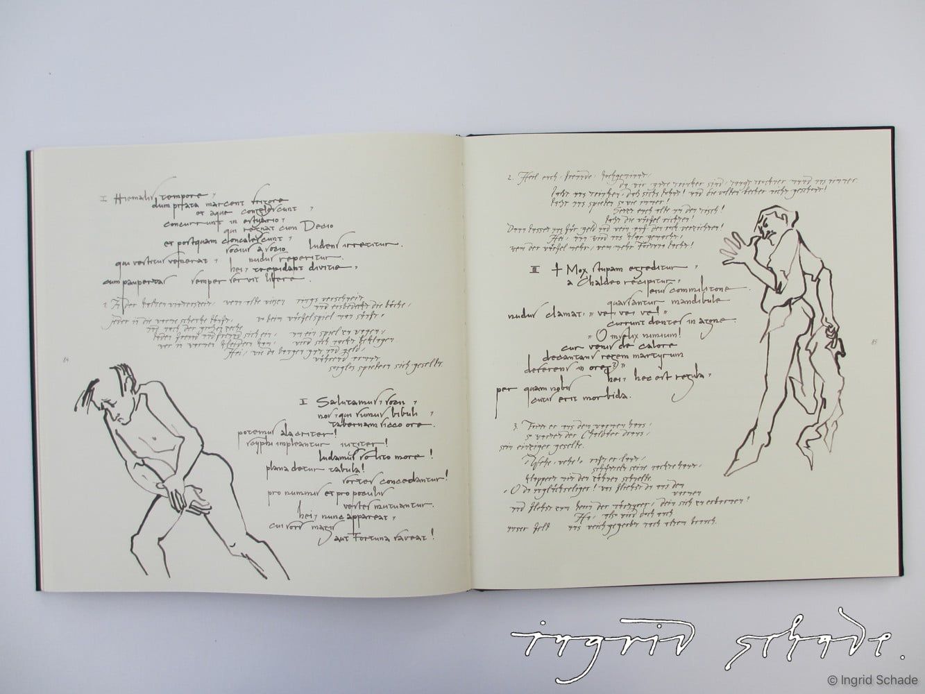 Carmina BuranaAuswahl aus meiner Diplomarbeit 1986: „Buchgestaltung, Kalligraphie, Zeichnungen“ – Eigene Auswahl von Texten aus der mittelalterlichen Liedersammlung.